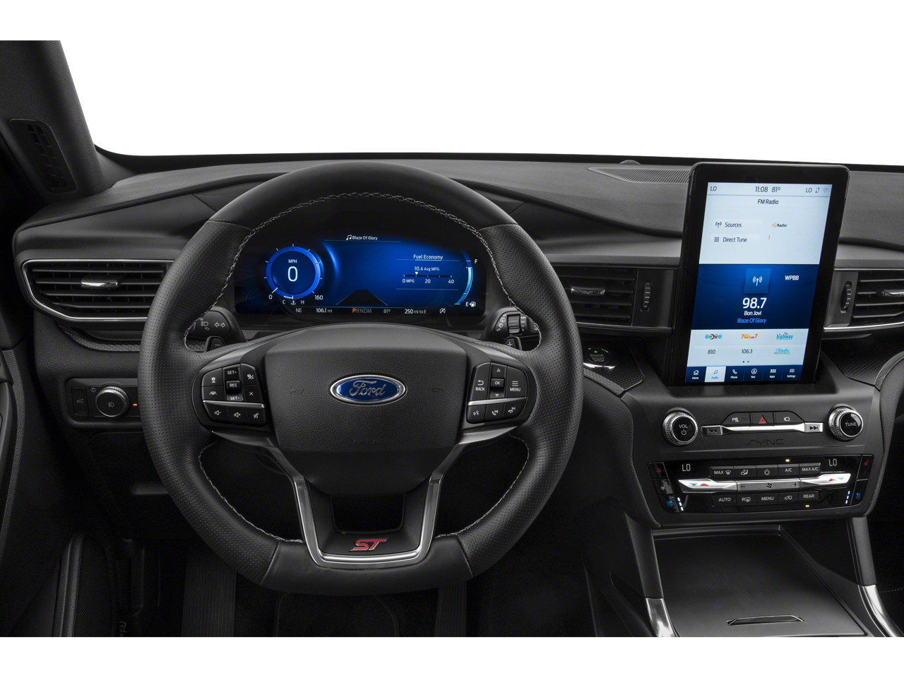 360-Degree Camera w/Split View, Alloy wheels, Auto-Dimming Rearview Mirror (Interior), Automatic temperature control, Emergency communication system: SYNC 3 911 Assist, Equipment Group 401A, Evasive Steering Assist, Ford Co-Pilot360 Assist+, FordPass Connect, Front dual zone A/C, Front fog lights, Front Parking Sensors, Front Rain-Sensing Wipers, Fully automatic headlights, Hands-Free Foot-Activated Liftgate, Intelligent Adaptive Cruise Control, Memory Driver's Seat, Memory seat, Outside temperature display, Performance Front & Rear Brakes, Power Liftgate, Power Tilt/Telescoping Steering Column, Radio: B&O Sound System by Bang & Olufsen, Remote keyless entry, Reverse Brake Assist, Second Row Heated Seats, Sideview Mirrors w/Gloss Black Caps, Speed Sign Recognition, ST High Package, ST Street Pack, Steering wheel mounted audio controls, SYNC 3 Communications & Entertainment System, SYNC 3/Apple CarPlay/Android Auto, Telescoping steering wheel, Third Row PowerFold (Folds Flat), Tilt steering wheel, Twin Panel Moonroof, Universal Garage Door Opener (UGDO), Voice-Activated Touchscreen Navigation System, Wheels: 21 Aluminum, Wireless Charging Pad.