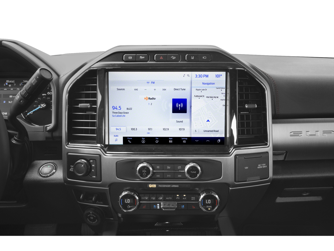 - SYNC 4 w/Enhanced Voice Recognition -inc: 12" LCD capacitive touchscreen w/swipe capability, information on demand panel, wireless phone connection, cloud connected, AppLink w/app catalog, 911 assist, Apple CarPlay and Android Auto compatibility, digital owner's manual, conversational voice command recognition and connected built-in navigation w/complimentary 3-year trial for eligible vehicles that begins on the new vehicle warranty start date, Customers must unlock the navigation service trial by activating the eligible vehicle w/a FordPass member account, If not subscribed by the end of the complimentary period, the connected navigation service will terminate, and the system will revert to embedded offline navigation, Navigation services require SYNC4 and Ford Pass Connect (optional on select vehicles), complimentary connect service and the FordPass app (see FordPass terms for details), Connected service and features depend on compatible AT&T network availability, Evolving technology/cellular networks/vehicle capability may limit functionality and prevent operation of connected features, FordPass app, compatible w/select smartphone platforms, is available via a download, Message and data rates may apply